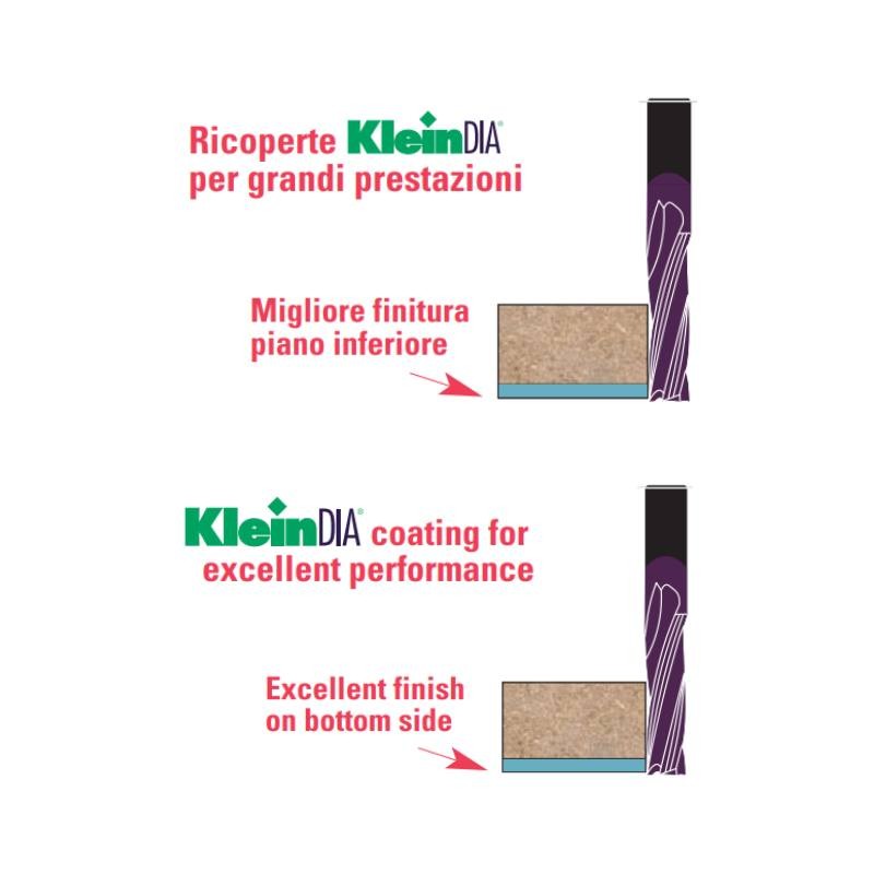 KleinDIA® ist ein DLC (Diamond-like Carbon). Sein niedriger Reibungskoeffizient ermöglicht die Bearbeitung von Aluminium und Kunststoffmaterialen zu verbessern und können ohne Schmiermittel bewirkt werden. KleinDIA® sichert ausgezeichnete Resultate in der Verarbeitung des Plastiks, graphitischen Materialen und Plexiglas.