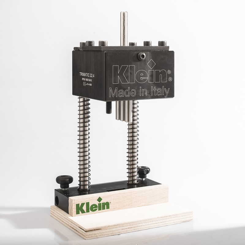 Die TRIMATIC 22,4 sind Bohrmasken, die es erlauben, mit einer normalen Ständerbohrmaschine oder einer tragbaren elektrischen Bohrmaschine in einem Mal den Sitz von Lamello® Cabineo® auszuführen.