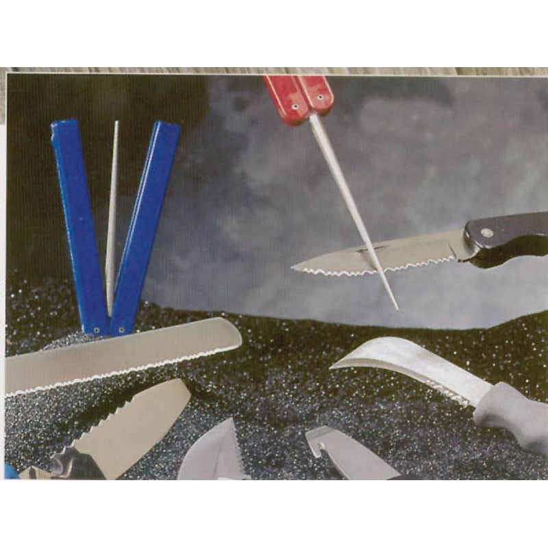Konischer Diamant Schleifstein mit umklappbarem, als Hülle dienendem Plastikgriff.