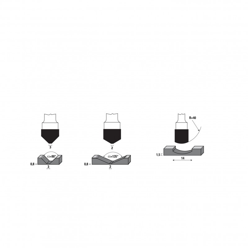 • Speziell für das Einritzen von ACM (Aluminium-Verbundmaterial) mit 90° und 135°-Winkeln (mit flachen Böden) und Rechtecknut für Falzungen bis zu 180°, wodurch eine einfache Handbiegung der Platte ohne Rissbildung ermöglicht wird.