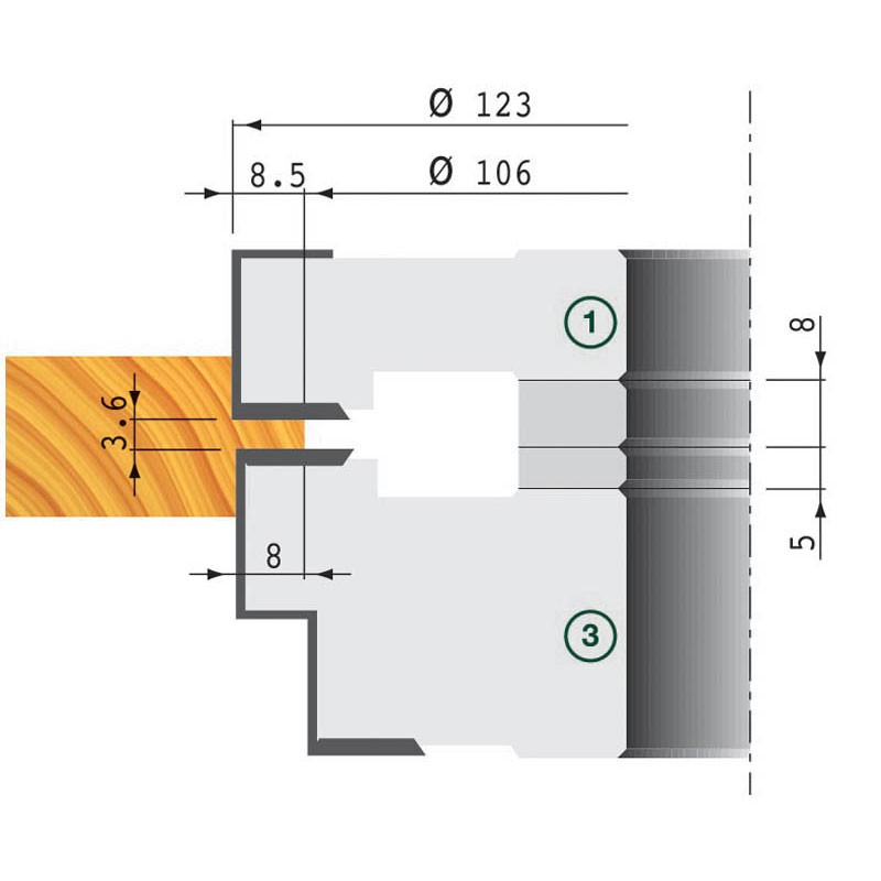 • Grupo de fresas para producir diversos tipos de perfiles.