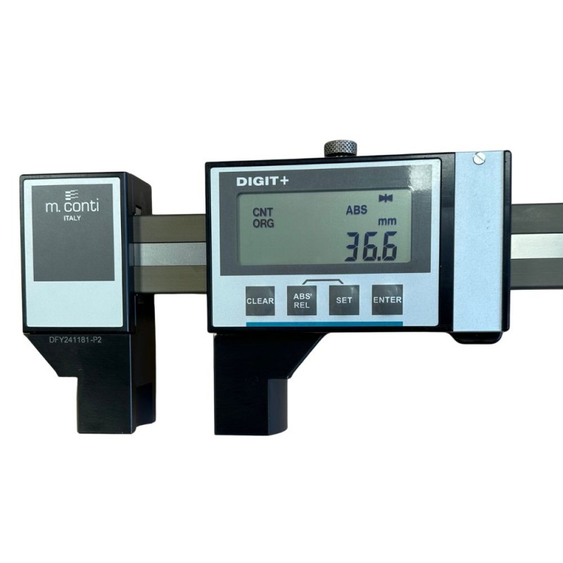 El calibre Digit + es una evolución de la serie previa de calibres. Se trata de un calibre sencillo, práctico y ligero, al tiempo que rígido y preciso. La barra deslizante, de perfil de aluminio, se ha diseñado de forma que la propia barra aloje las guías de deslizamiento y el asiento para la banda magnética, con lo que se obtiene una gran rigidez.