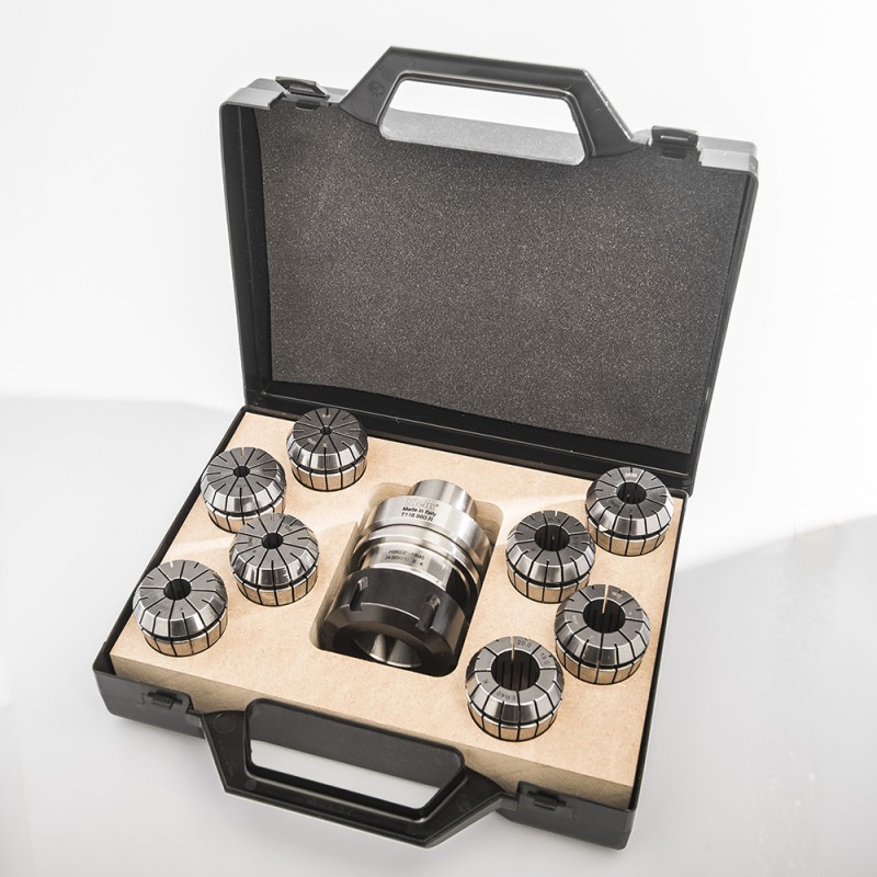 Porte-outils cône HSK63F (Art. T118.980.R) + nr. 8 pinces ER40 Art. T123 (ø6-ø8-ø10-ø12-ø16-ø18-ø20-ø25) Pour voir le prix