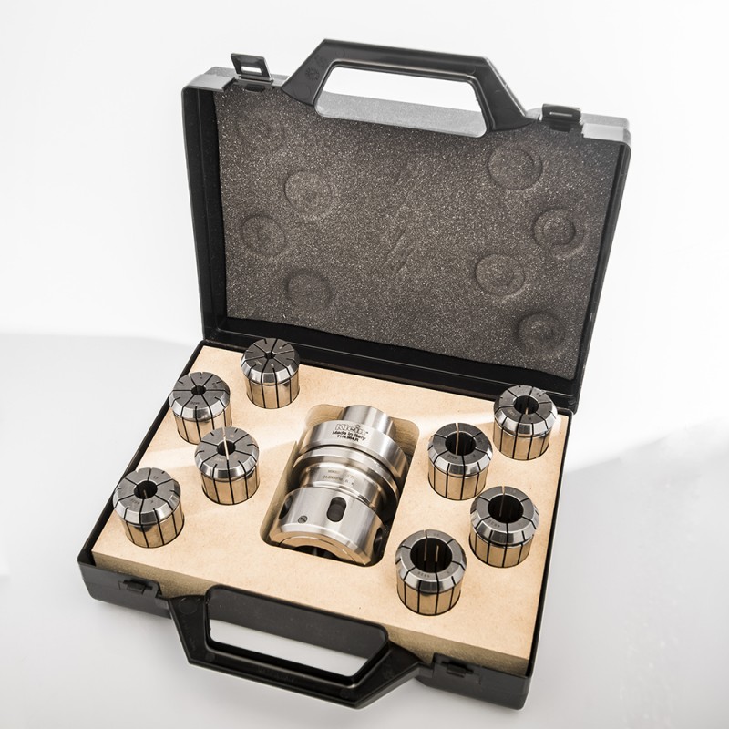 Contiennent un cône porte - outils HSK63F avec écrou de serrage à roulement + 8 pinces EOC25.