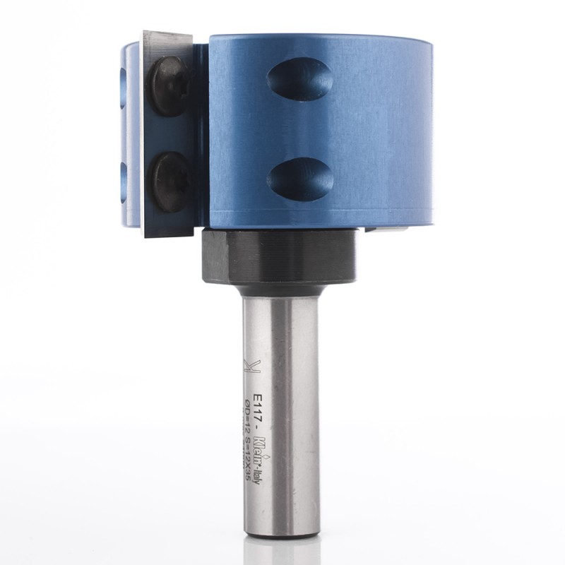 • Fraise à couteaux réversibles pour rainures, marches et canaux à utiliser sur une table de fraisage avec pince de serrage de 12 mm.
