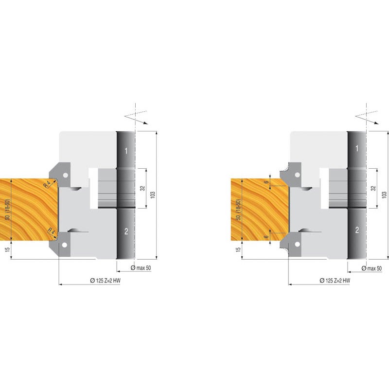 • Groupe fraise pour chanfreins et rayons R=2-3-4-5-6 et chanfreins à 45°.