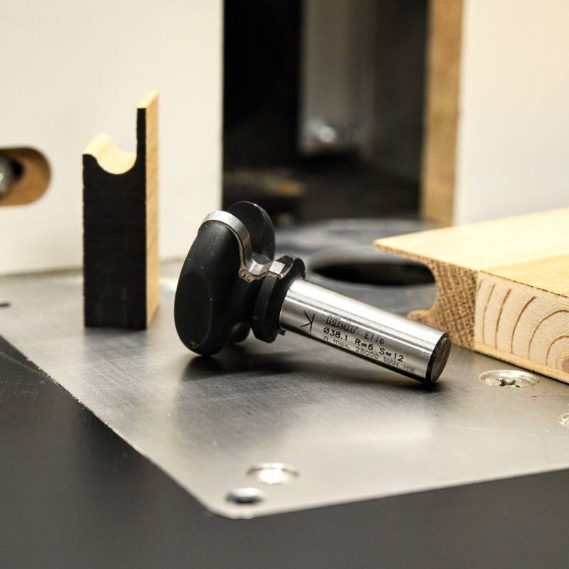 Questa fresa permette di creare due tipi di maniglie su legno; una con profilo sagomato direttamente sull'antina/cassetto e l'altra in stile continentale in legno duro. Utilissima per chi ha deciso di costruirsi da solo il proprio comodino o cassettiera senza voler ulteriori spese per apporci maniglie. Prestare particolare attenzione durante la fresata poichè la fresa rimuove grosse quantità di truciolo ed effettuare una fresata troppo profonda potrebbe compromettere il vostro lavoro. Non fresare mai piccoli pezzi singoli. Per asportare grosse quantità di materiale è consigliabile effettuare più passate.